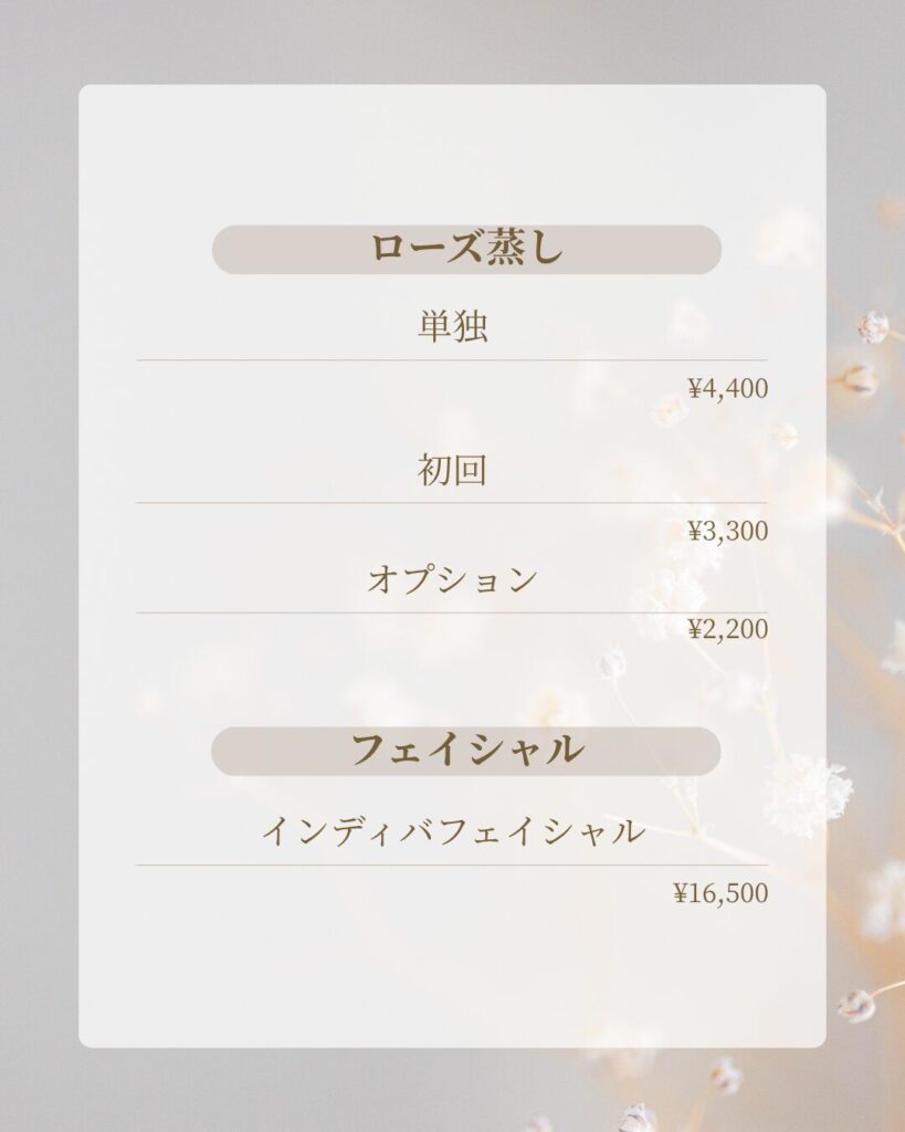 サービス内容 | マッサージ、ローズ蒸し、痩身、フェイシャルケア、美容脱毛、育毛 |